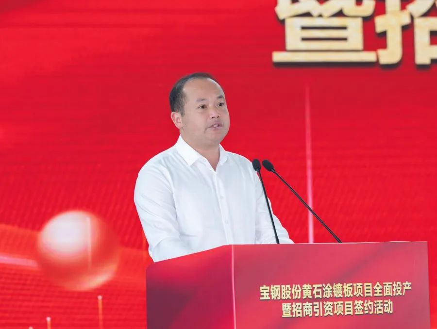寶鋼股份黨委常委、副總經(jīng)理傅建國,寶鋼股份黃石涂鍍板有限公司黨委書記、董事長鄒美平出席活動并講話。